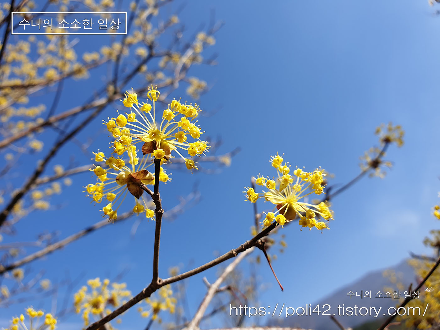 다가오는 3월15일~30일, 올해도 비슷한 시기에 아름다운 산수유 꽃을 볼 수 있을 것 같아요.