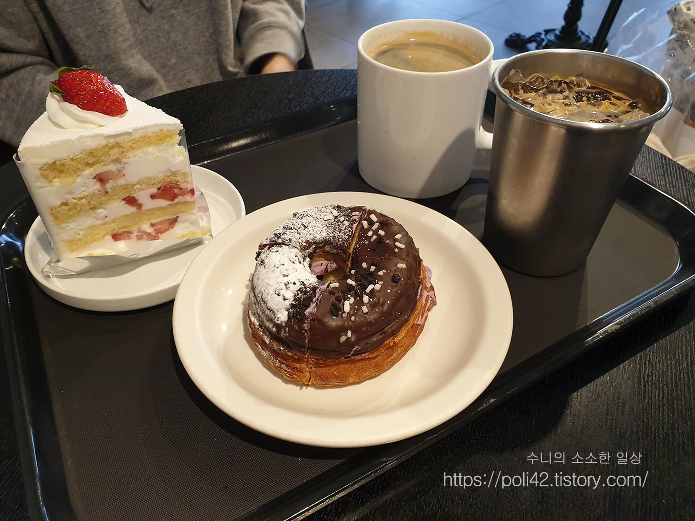 잠시 후, 저희가 고른 음료와 디저트가 나왔습니다.