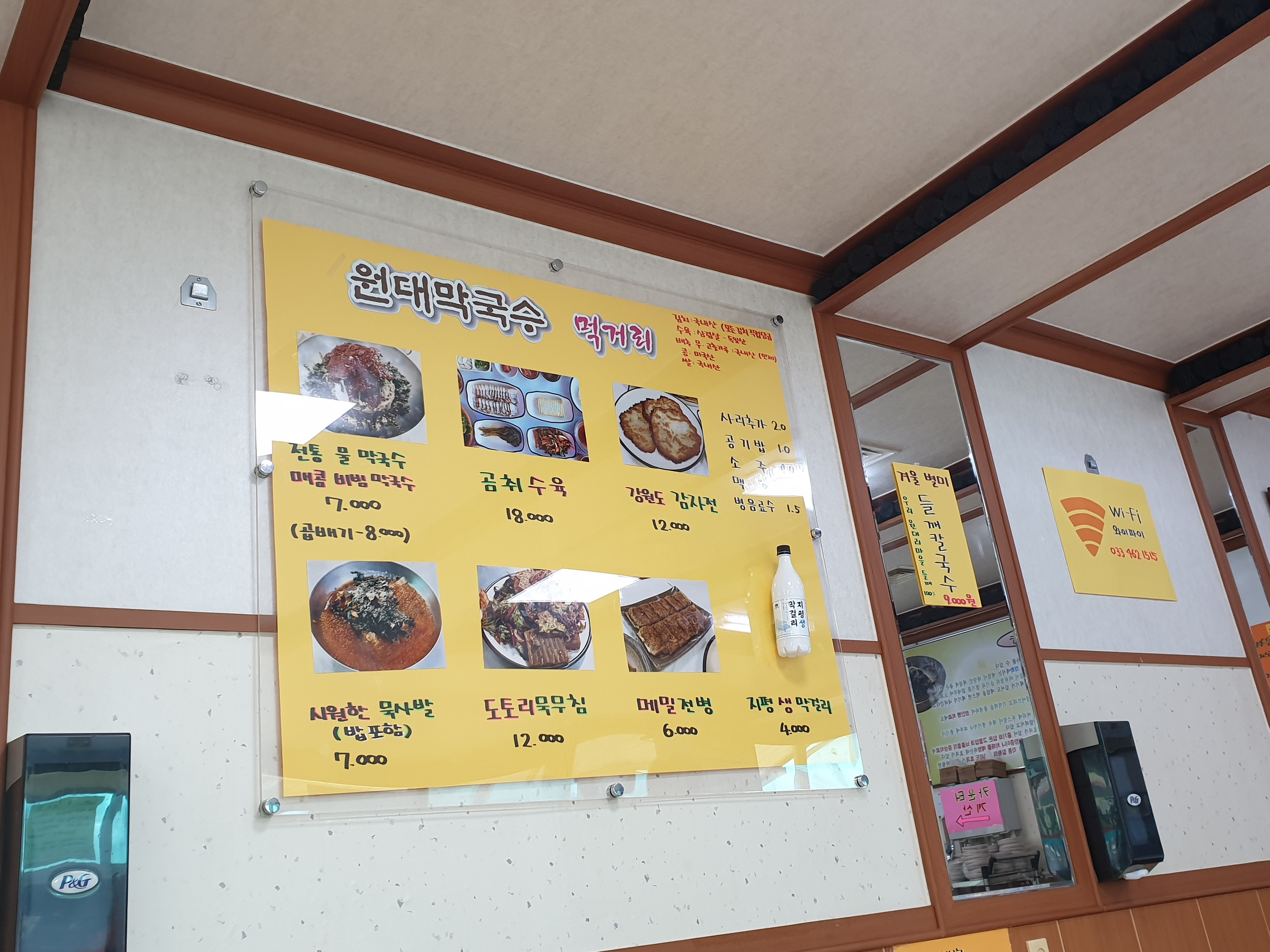 막국수집 하면 생각나는 메뉴들과, 가을 별미로 들깨 칼국수를 판매하고 있네요.
