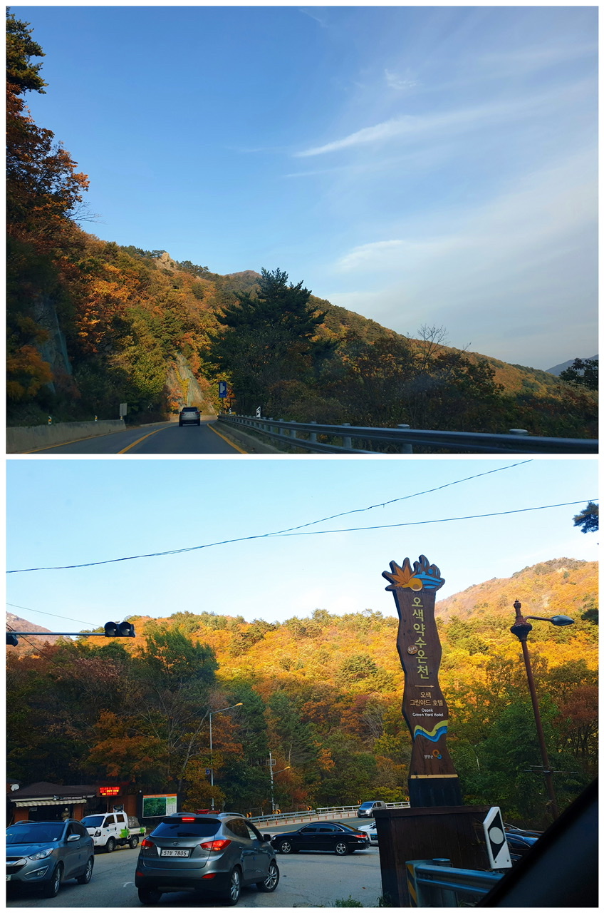 구불구불 가파른 길을 한참 내려가다 오색 약수 온천이 나오면 한계령 고갯길 드라이브도 거의 끝이 납니다.