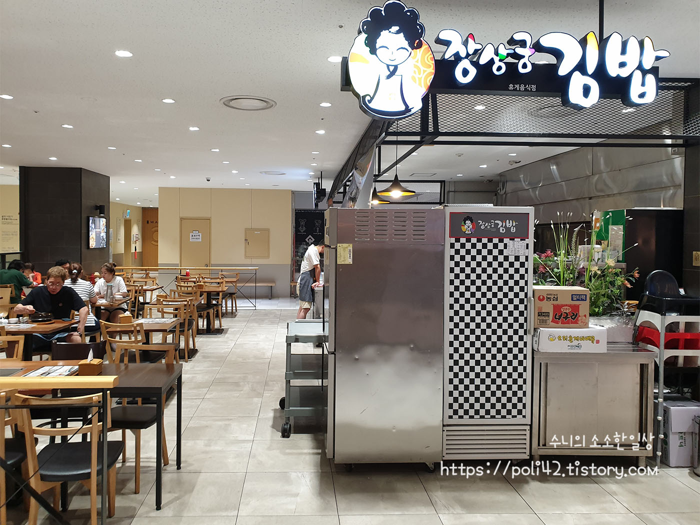 떡볶이와 김밥과 같은 분식 종류와 그밖에 다양한 식사 메뉴들을 판매하고 있는 장상궁 김밥.