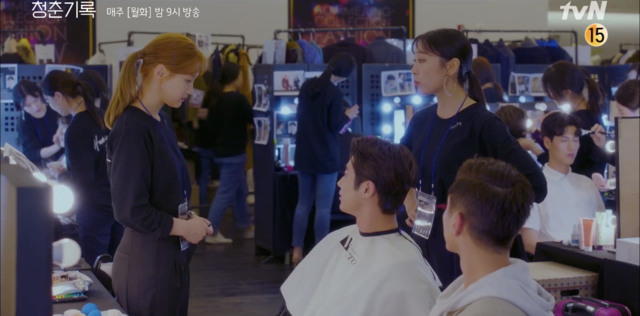런웨이 백스테이지에서 메이크업 어시스던트로 투입된 그녀는