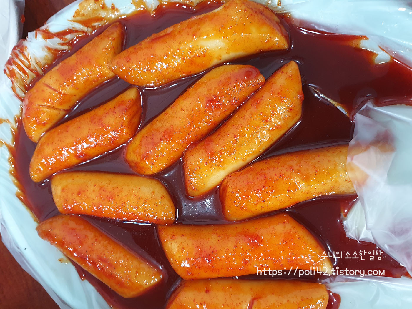 쫄깃하면서도 양념이 잘 배어 있는 쌀떡.