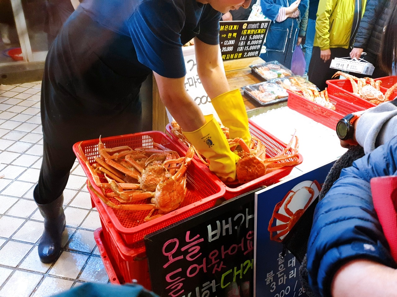 대게철이라 그런지 대게를 파는곳이 많이 보였고, 그 앞에는 많은 사람들이 줄지어 서있었습니다.