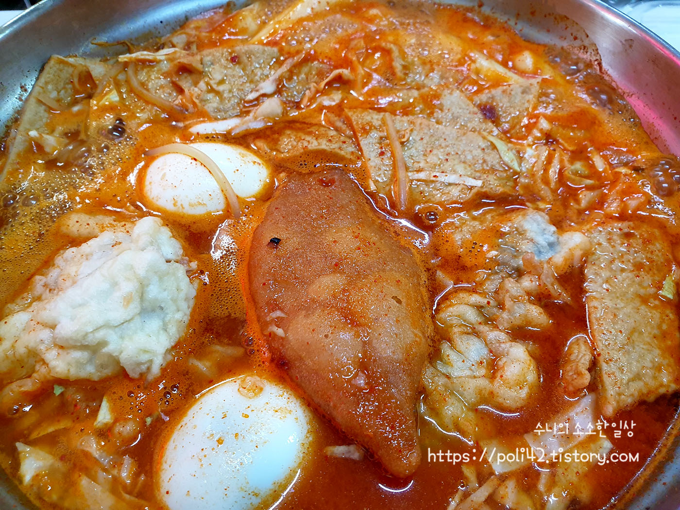 국물을 자꾸 먹게 되는, 밥이 먹고 싶어 지는 그런 떡볶이였어요.