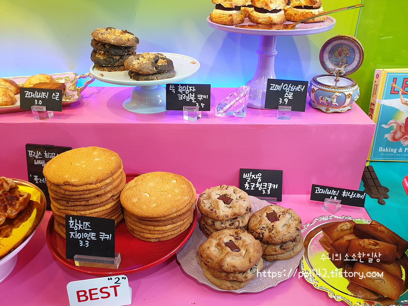 쿠키 2개, 마카롱 2개 총 4개 정도만 구입했어요.