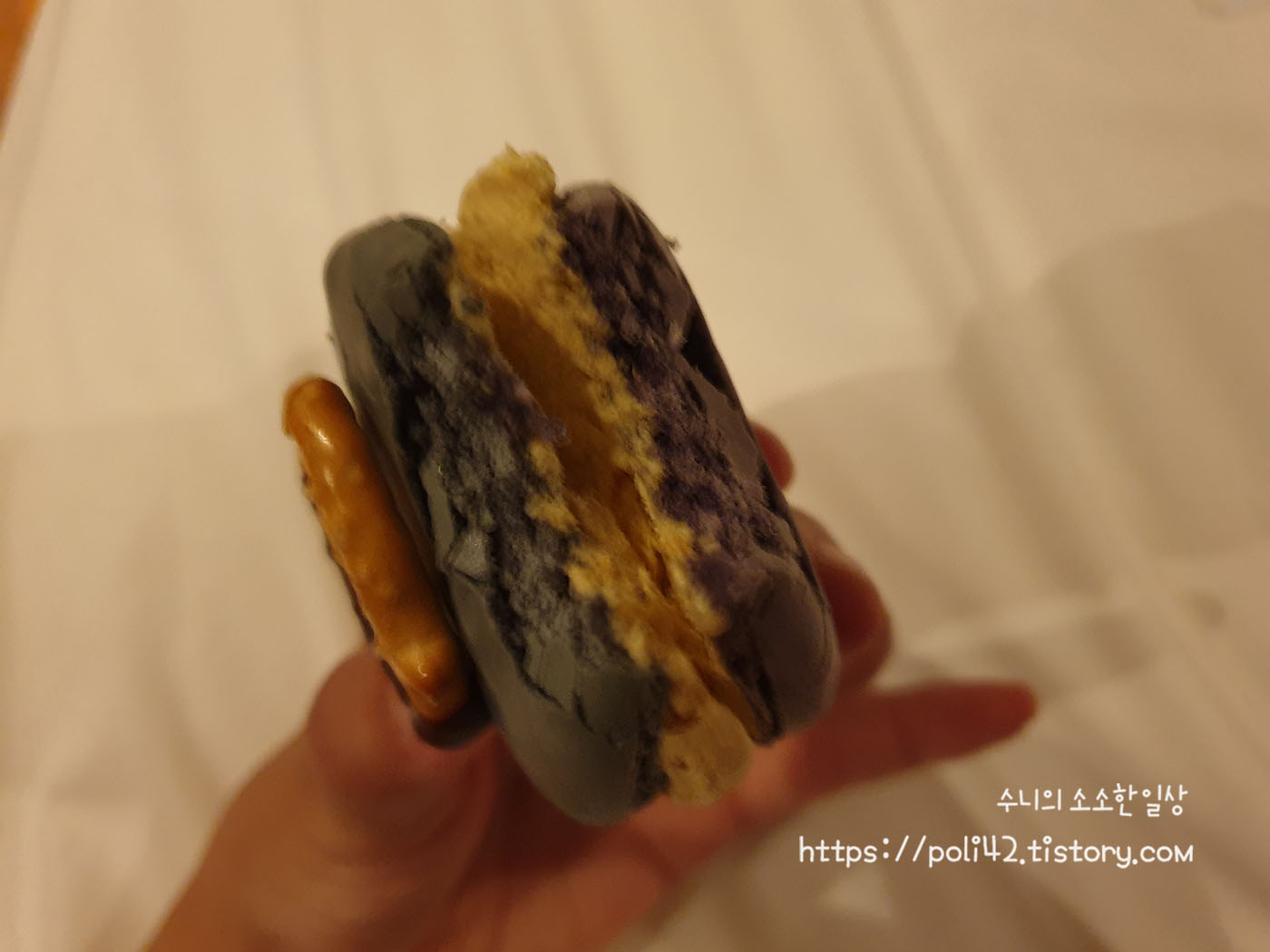 꼬끄는 쫀득하고, 속 안에 블루베리 크림은 상큼 달콤, 너무 맛있게 먹었습니다.
