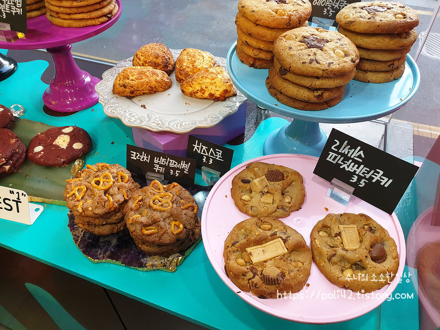 황치즈 자이언트 쿠키, 프랄린 돌체 라테 쿠키를 구입했습니다.