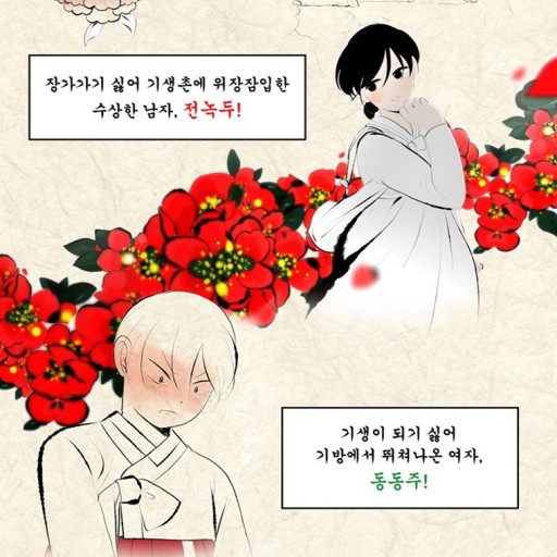 미스터리한 과부촌에 여장을 하고 잠입한 전녹두와 기생이 되기 싫은 반전 있는 처자 동동주의