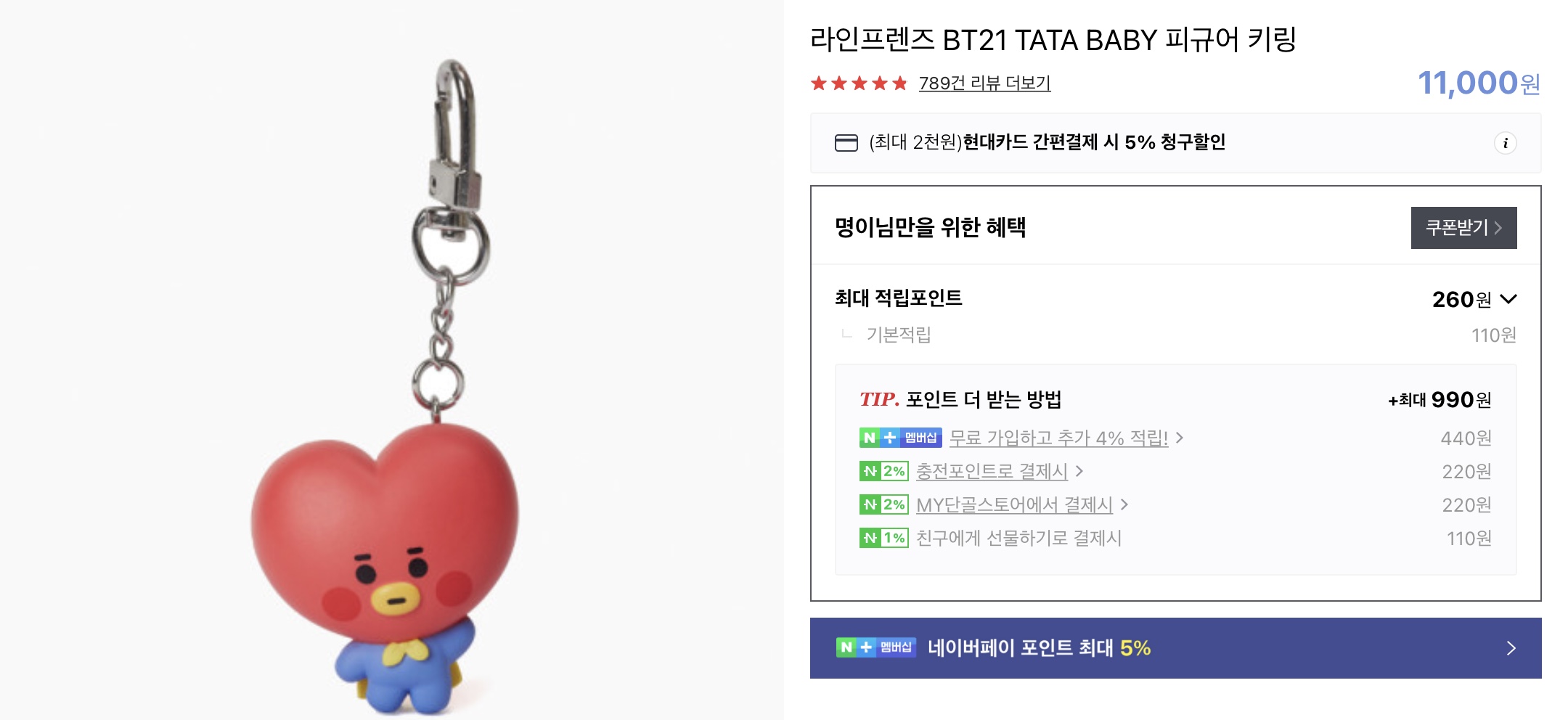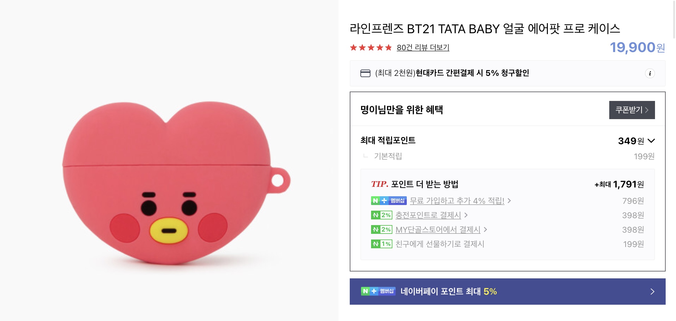 고민하다가 베이비 타타 에어팟 프로 케이스 구입, 키링도 함께 구입했어요.
