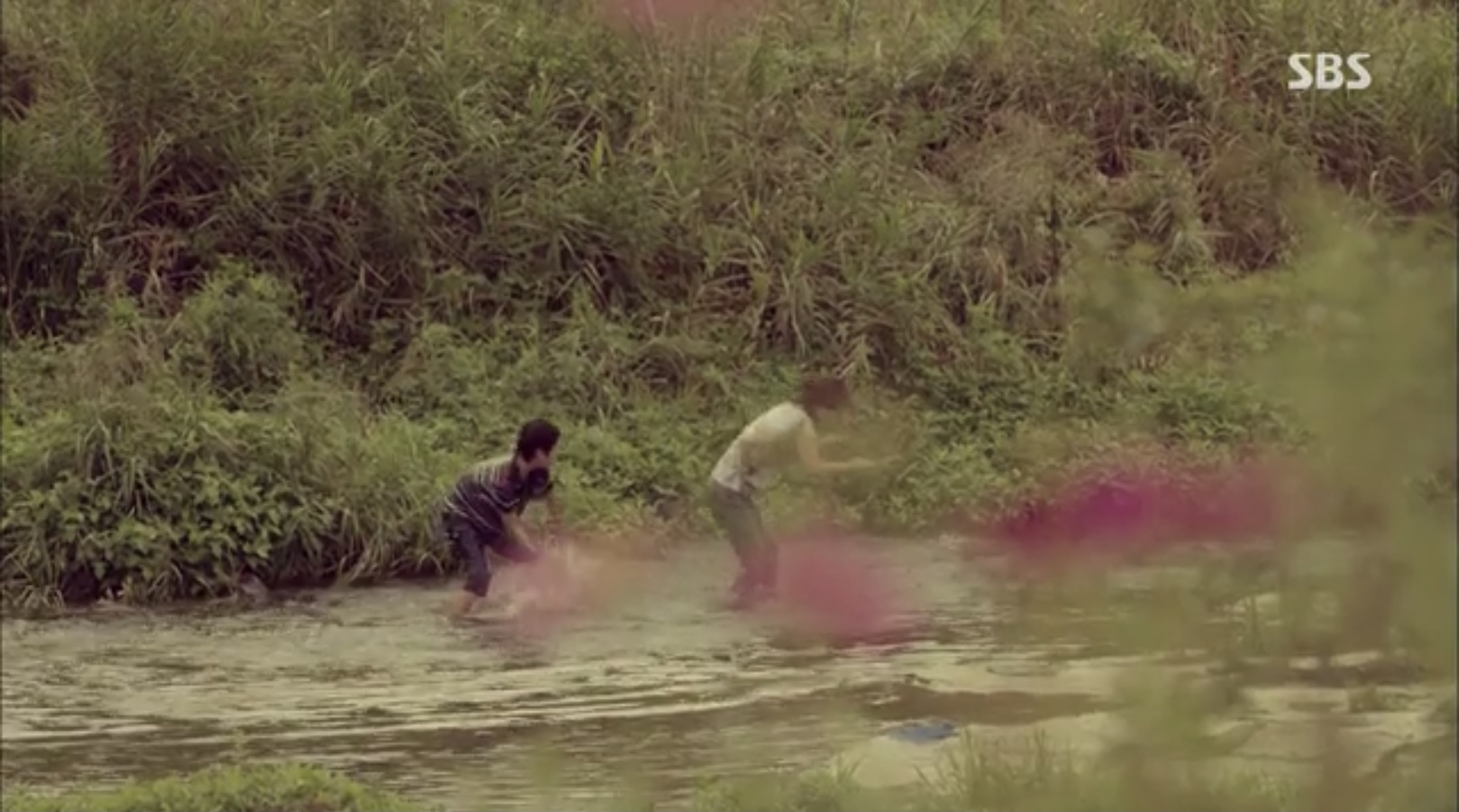 재열이가 들어왔고, 그렇게 함께 한참을 숨어있다 나와서 냇가에서 몸을 씻는데,