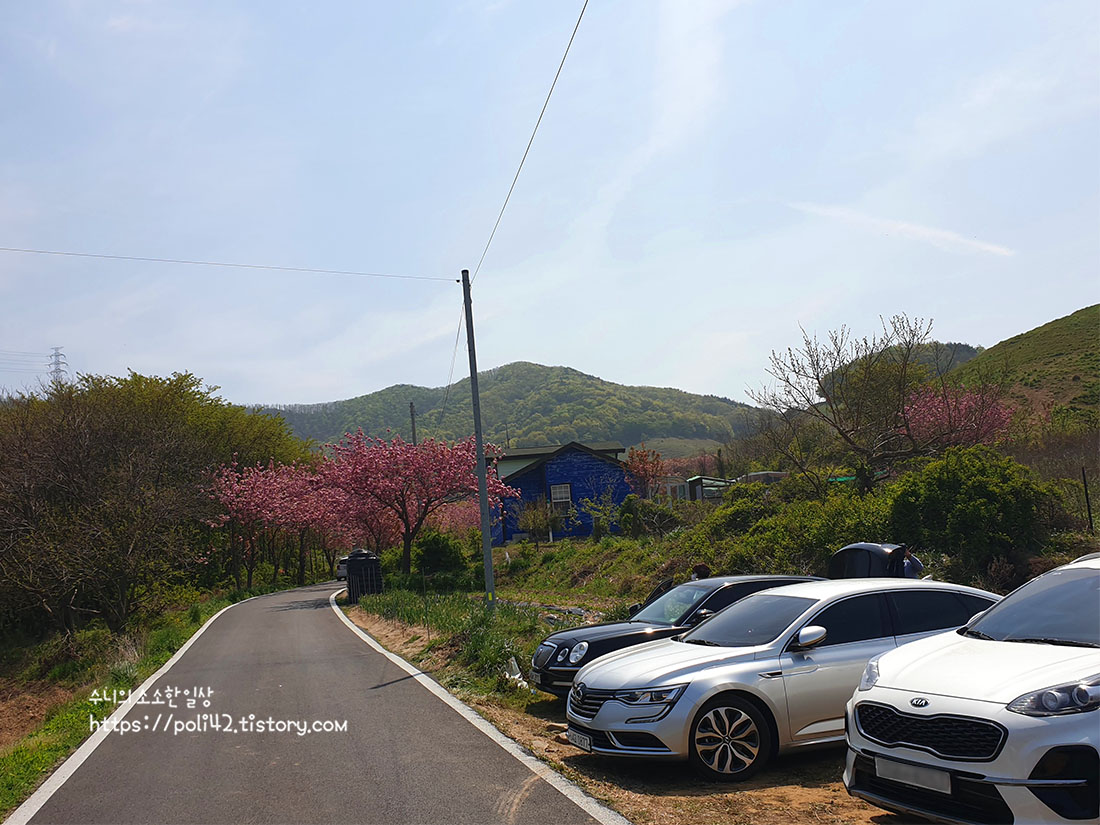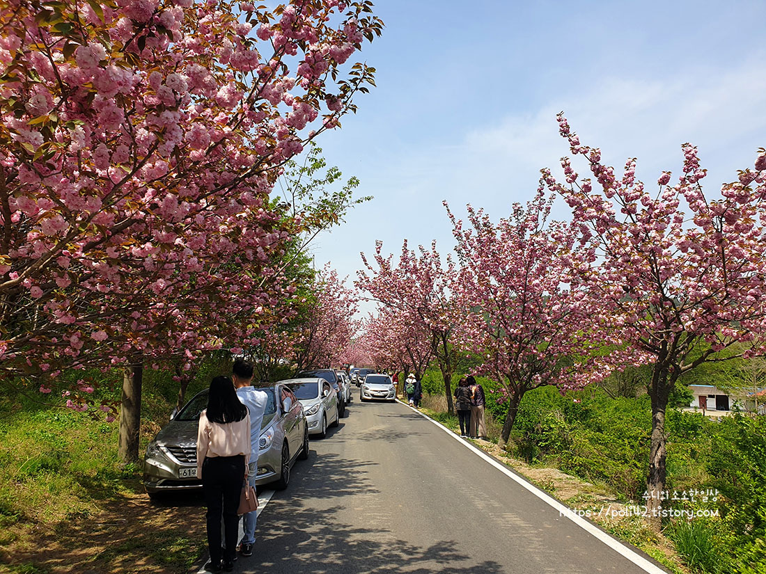이렇게 벚꽃 터널과 함께 갓길에 주차된 차량들이 보이기 시작하는데요,