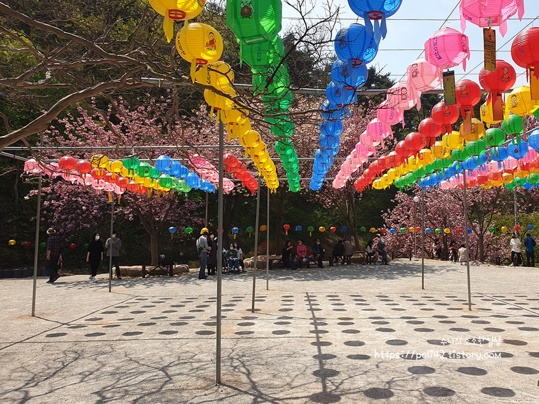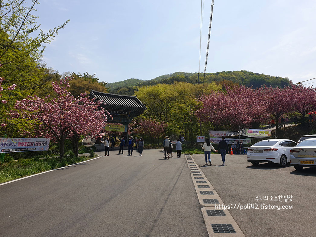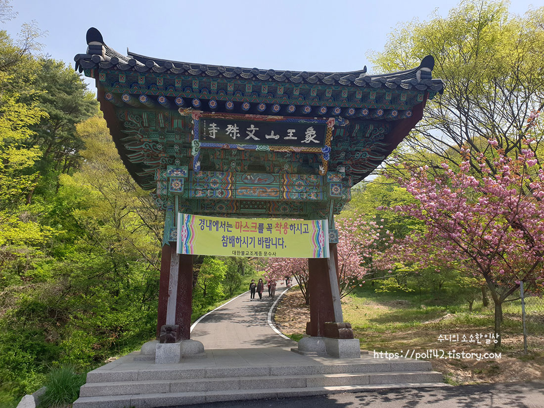 겹벚꽃 터널을 지나 문수사 도착.