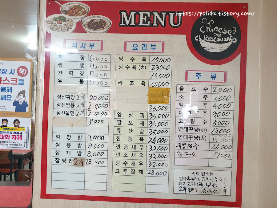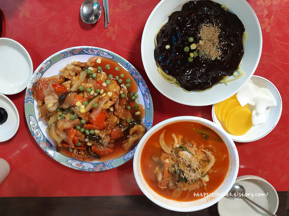 저희는 탕수육, 짜장면, 짬뽕을 하나씩 주문했습니다.