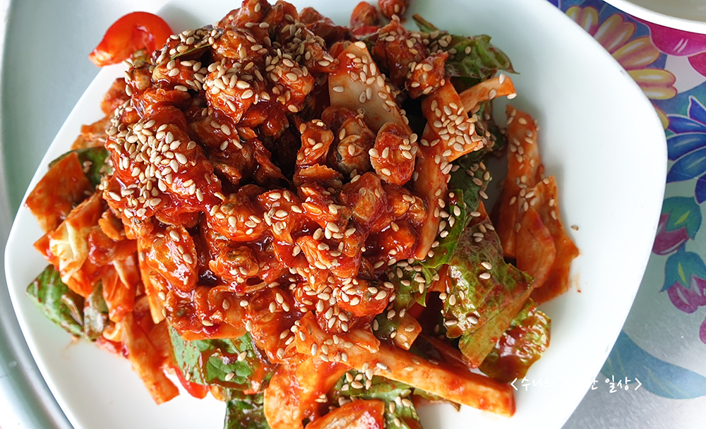 그리고 재첩이 정말 많이 들어 있었던 재첩회무침.
