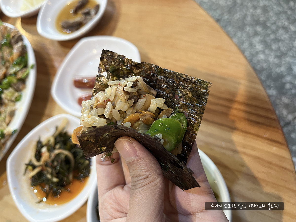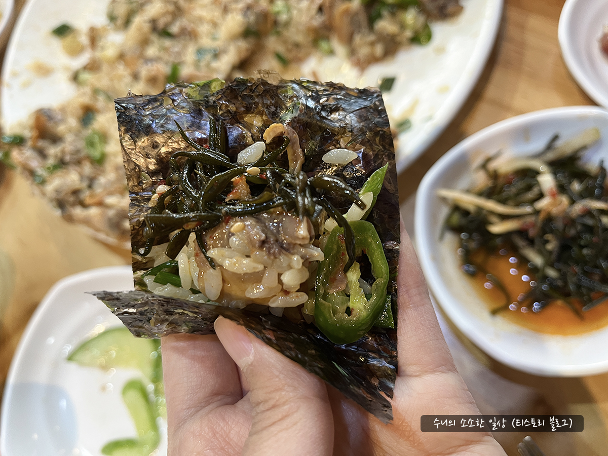 밥을 다 먹고, 꼬막무침에 밥을 추가해서 먹으면 돼요.