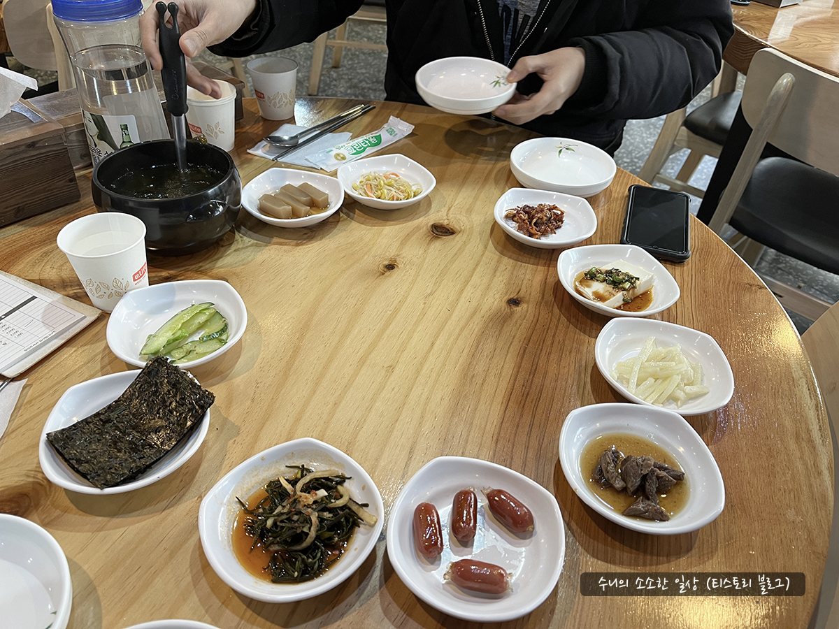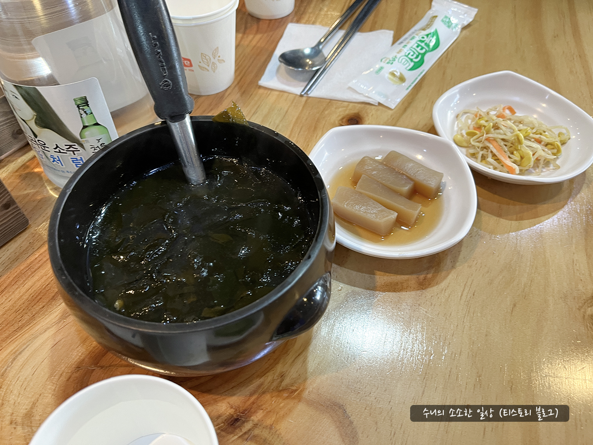 기본 반찬들이 나오고, 미역국이 나왔습니다.