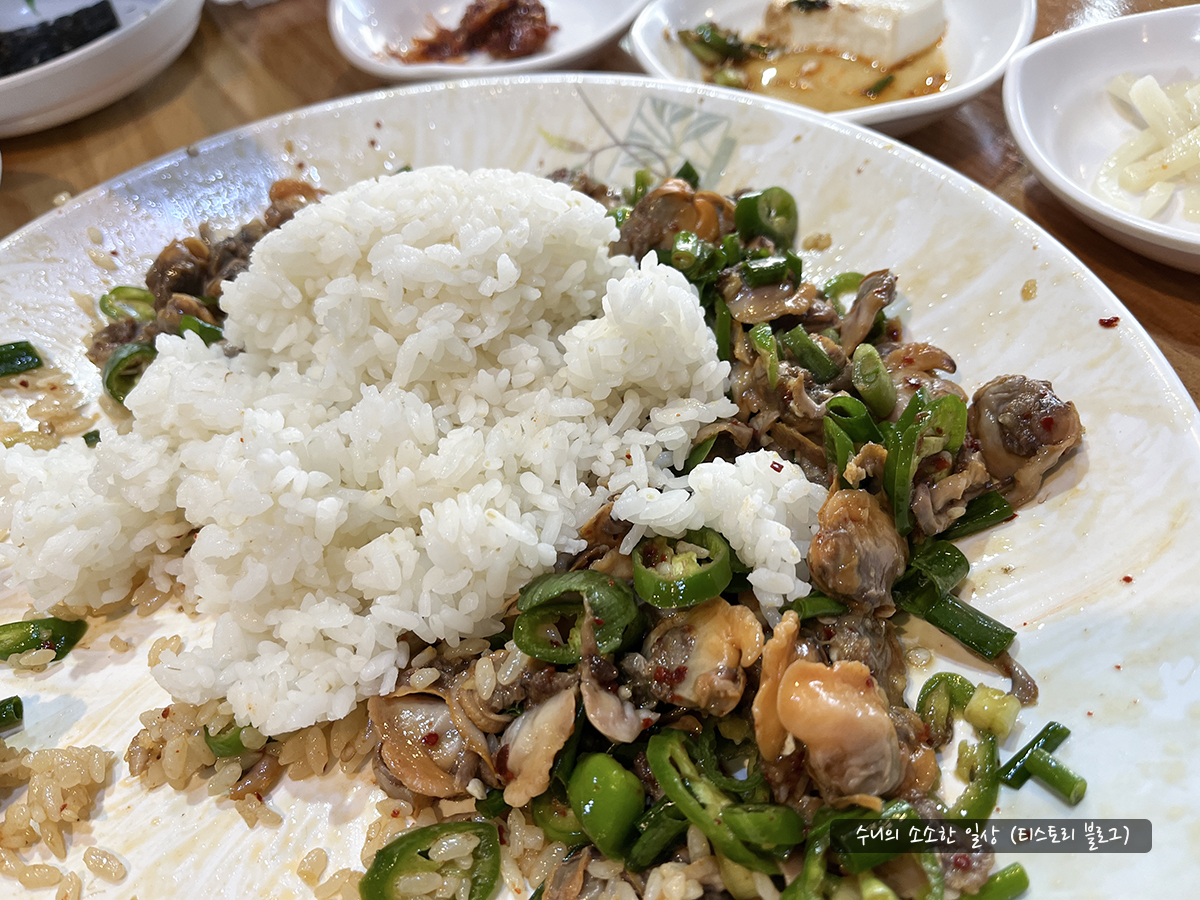 남은 꼬막무침에 공깃밥 추가해