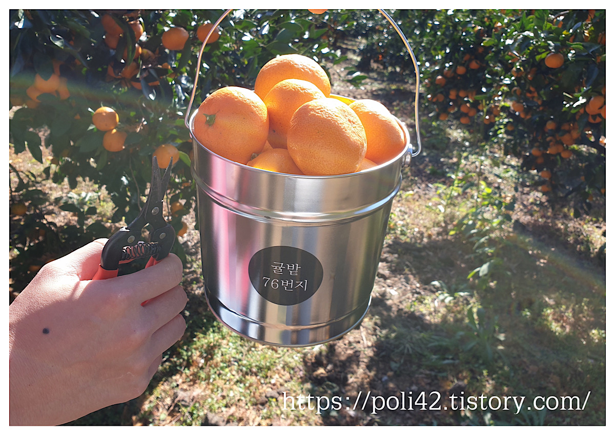 귤도 배 터지게 먹고 여행하는 동안 먹을 귤도 양동이 한가득 담아서 나왔습니다.