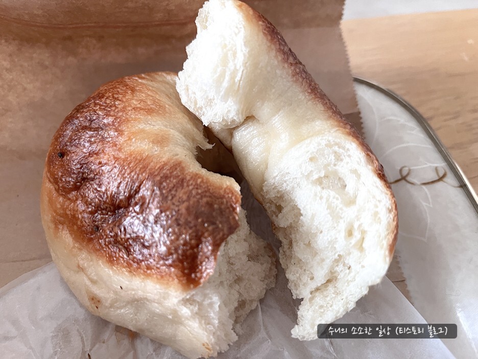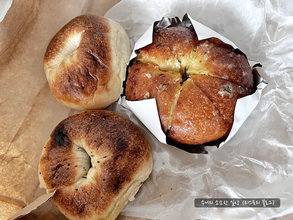 바질 베이글 하나는 구입하고 바로 따뜻할 때 하나 먹어버렸고, 어니언 마요는 남편이 저녁에 먹어서