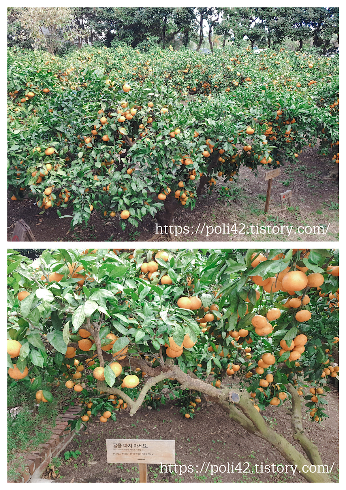 귤밭 체험하며, 서귀포로 오는 도중 테라로사 근처에서부터 이미 많이 봐버렸지만