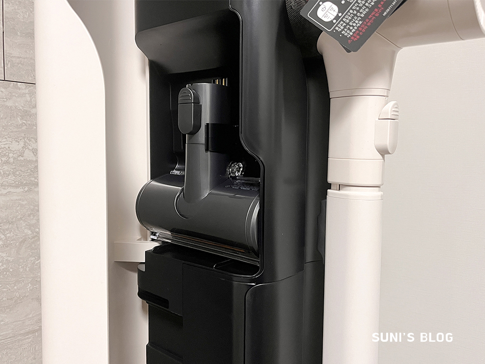 유선 청소기를 쓰다가 무선을 쓰니까 확실히 자리차지도 적고 편했습니다.