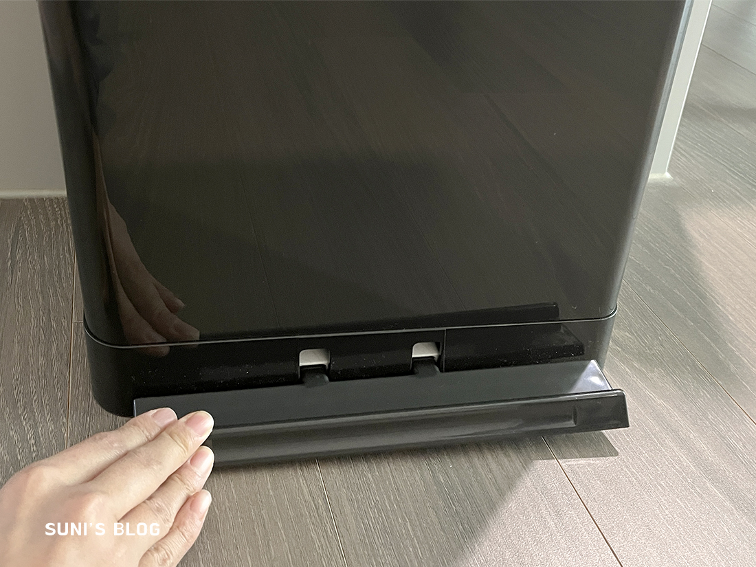 옆에 있는 사이드 버튼을 내려 하단부를 열어준 뒤 쓰레기를 비워주면 되는데요,