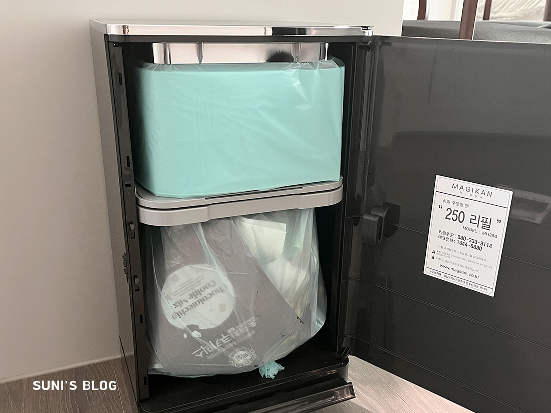 종량제 봉투를 끼워서 사용한다는 후기도 여럿 봤는데, 여러 가지로 전용 비닐을 사용하는 것이 가장 좋을 것 같습니다.