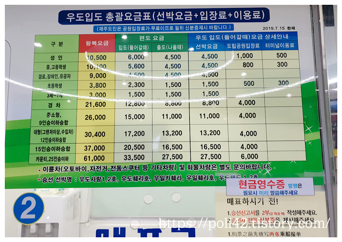 우도 왕복 티켓 가격 : 성인 10500원