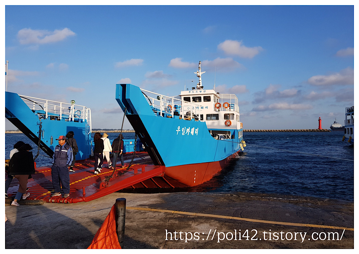 차량이나 오토바이를 갖고 들어가시는 것은 우도에서 숙박을 하거나 교통약자가 있는 특별한 경우가 아니면 안 된다고 해요.