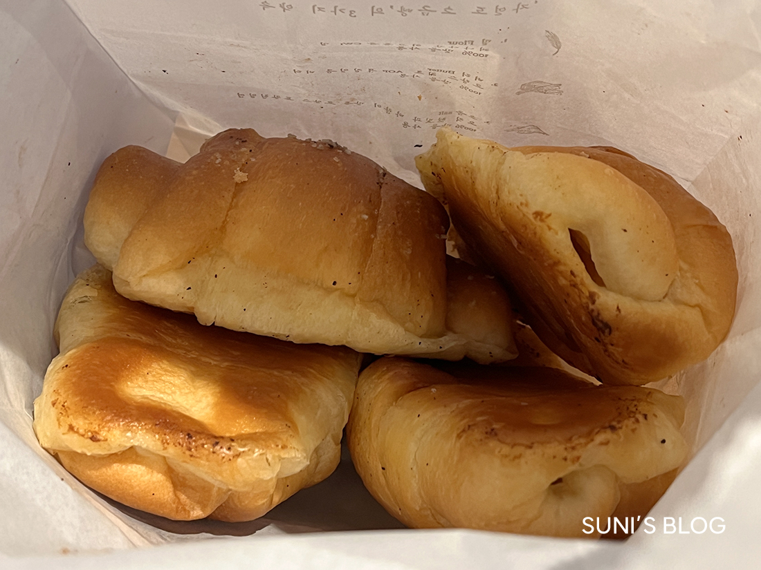 짠맛은 거의 없고, 버터향이 풍부한 타입의 소금빵이었습니다.