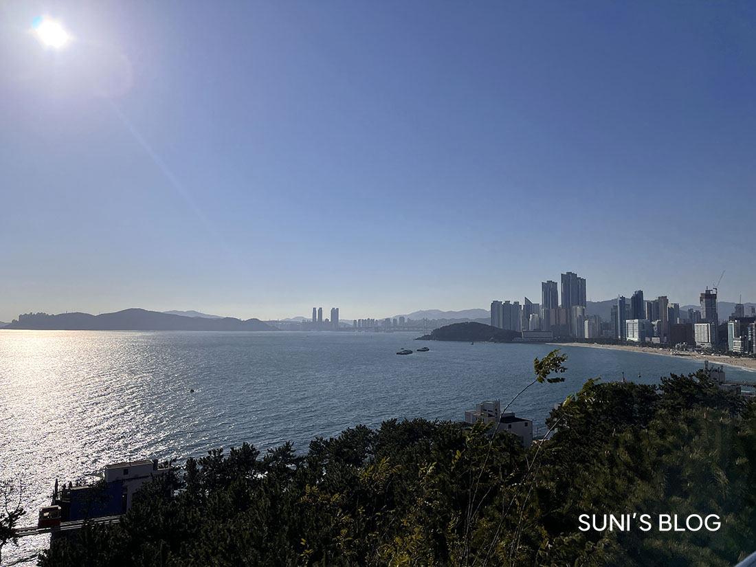 살짝 뒤돌아 보면 해운대 해변과 시그니엘이 보이는데,