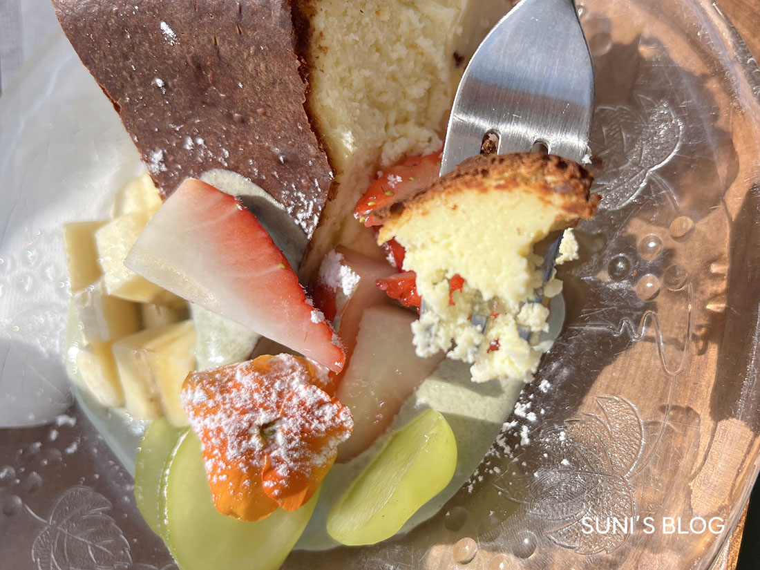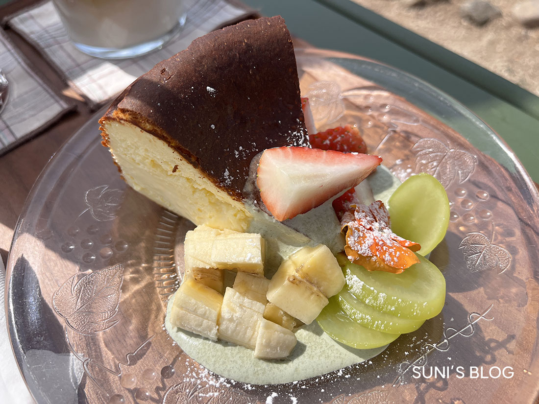 바스크 치즈케이크 위에는 과일들이 올라가 있고
