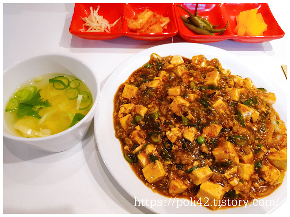 마파두부는 계란국과 같이 나왔는데요