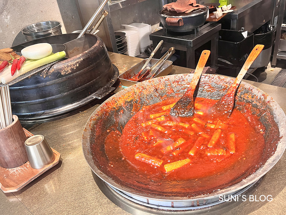 소스는 포장마차 떡볶이 스타일인 많이 달고 새빨갛고 꾸덕한 스타일이고