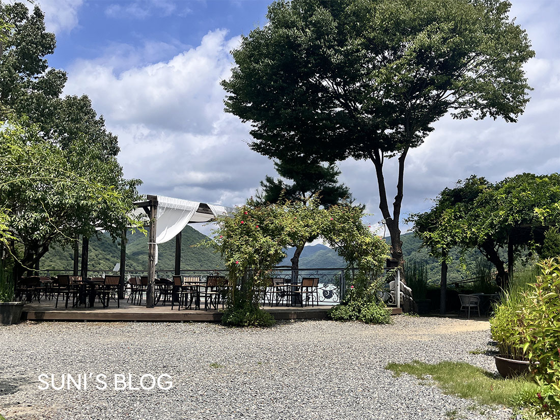 카페 앞으로는 멋진 호수뷰가 펼쳐져 있습니다.