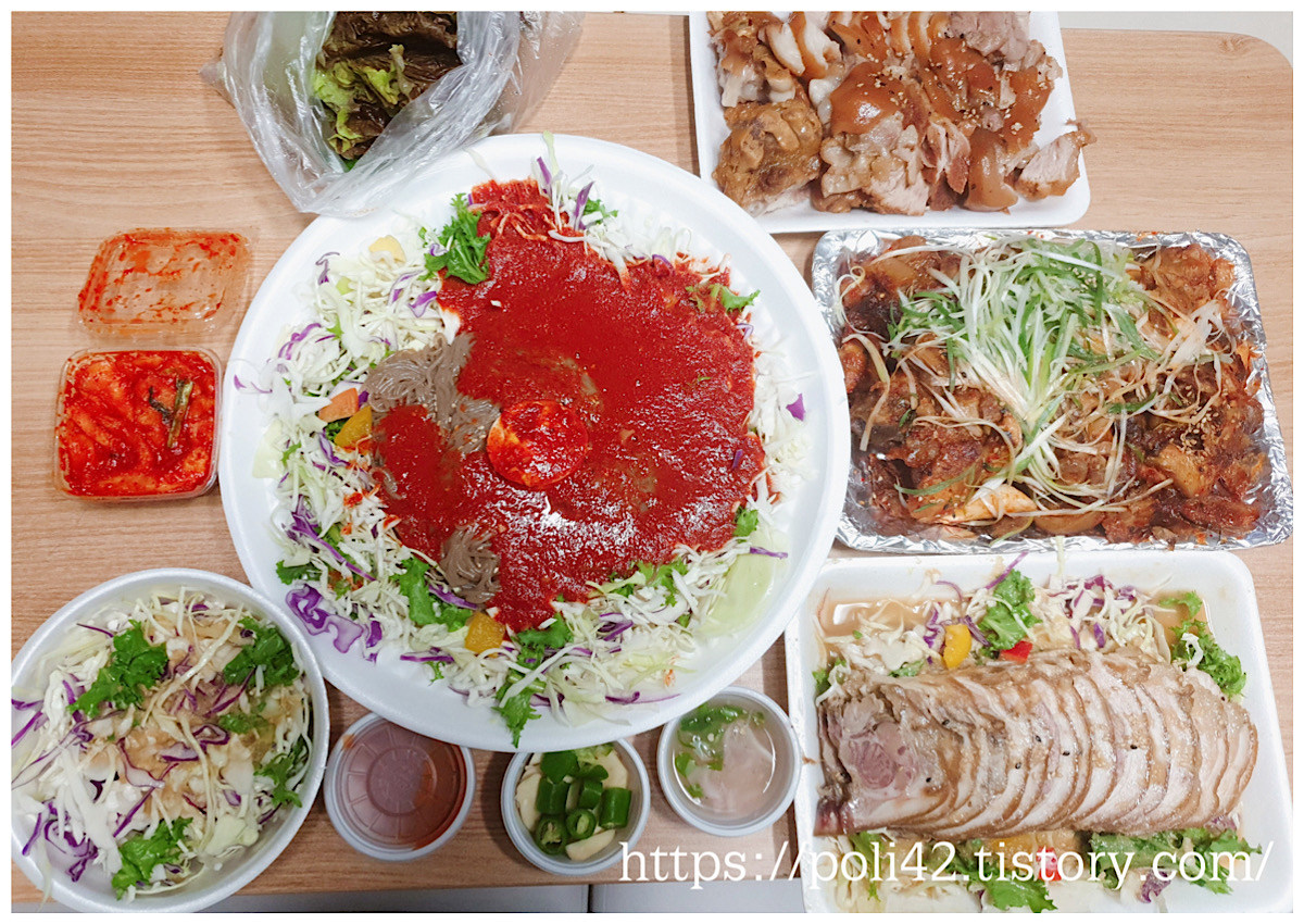 쟁반국수랑 기본 족발, 불 족발을 제외하고는 다 그냥 나오는 음식들이에요.